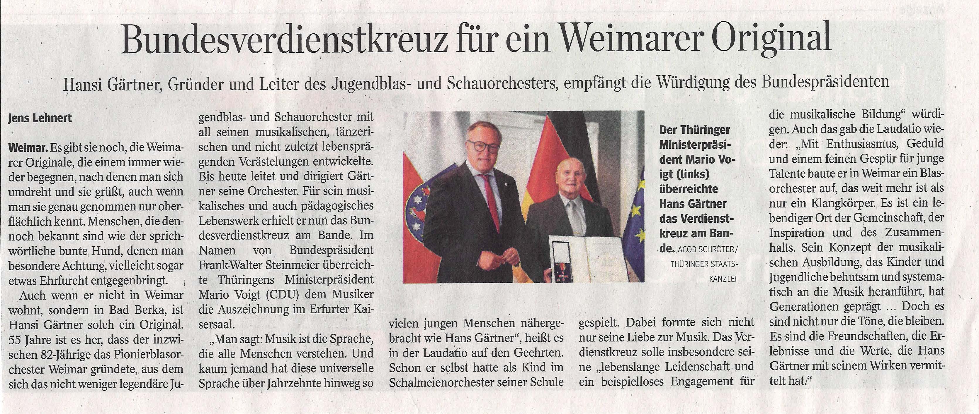 Bundespräsident ehrt Hans Gärtner mit Bundesverdienstkreuz